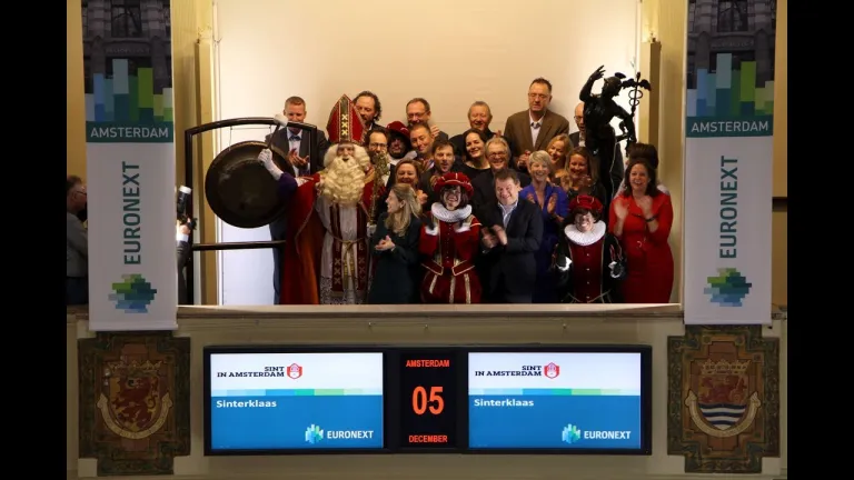 Sinterklaas brengt ook dit jaar een bezoek aan Beursplein 5. Zoals inmiddels traditie is, opent hij omringd door de bisschoppelijke ambassadeurs om 09:00 uur de beurshandel met een gongslag.