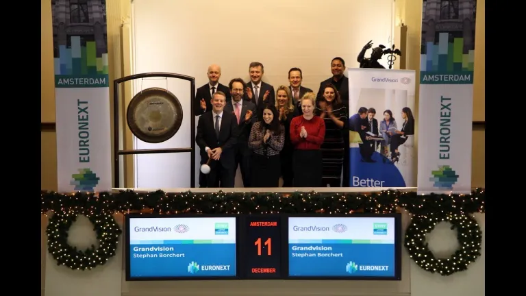 De heer Borchert werd in februari van dit jaar benoemd tot CEO van GrandVision. Ter ere hiervan opent hij door het luiden van de gong de handel van de Amsterdamse beurs.