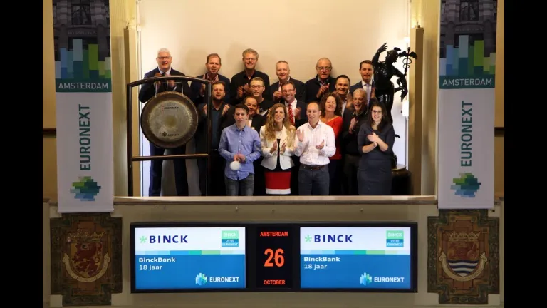 BinckBank viert 18 jarig jubileum met een slag op de gong