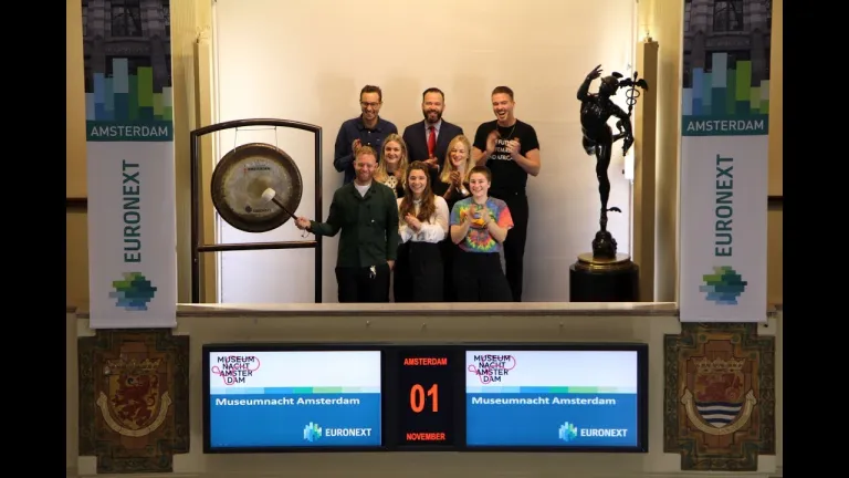 Ter ere van de Week van de Belegger luidt Zita Chengadu, coördinator van de grootste beleggersclub van Nederland ‘Bull Up’ de beursgong.