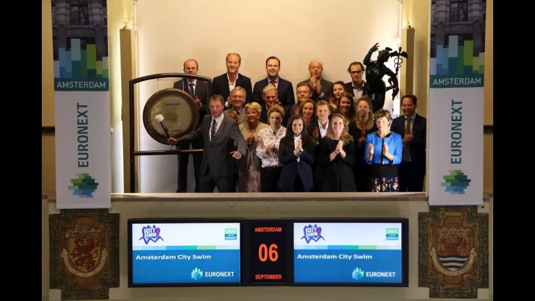 De beursgong kondigt de zevende editie van de Amsterdam City Swim aan. Op zondag 9 september vindt de Amsterdam City Swim plaats en bij deze editie duiken ruim 2500 volwassen en 300 kids de Amsterdamse grachten in om geld in te zamelen voor Stichting ALS Nederland. Het parcours loopt van het Marine Etablissement Amsterdam naar de Keizersgracht.