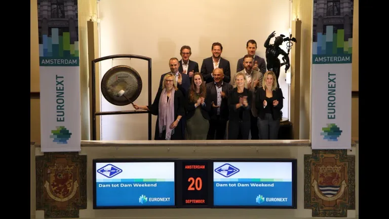 De handel wordt geopend door ABN AMRO, Ahold Delhaize, KLM, Le Champion en Asics als startsein voor het Dam tot Dam Weekend op 22 en 23 september. Monique Bosbaan, Reward Consultant /Wellbeing/Vitality expert bij ABN AMRO, luidt de gong. Asics, en de beursgenoteerde ABN AMRO, Ahold Delhaize en KLM zijn sponsor van de Dam Damloop, het grootste hardloopevenement van Nederland.