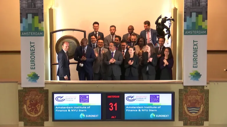 Amsterdam Institute of Finance (AIF) bezoekt Beursplein 5 met de deelnemers aan het Master of Science in Risk Management for Executives programma. Dit is een Master’s programma gericht op professionals in Risk Management verspreid over enkele modules in één jaar. Het vindt plaats in New York, Amsterdam en Hong Kong. Het programma wordt verzorgd in samenwerking met NYU Stern School of Business.