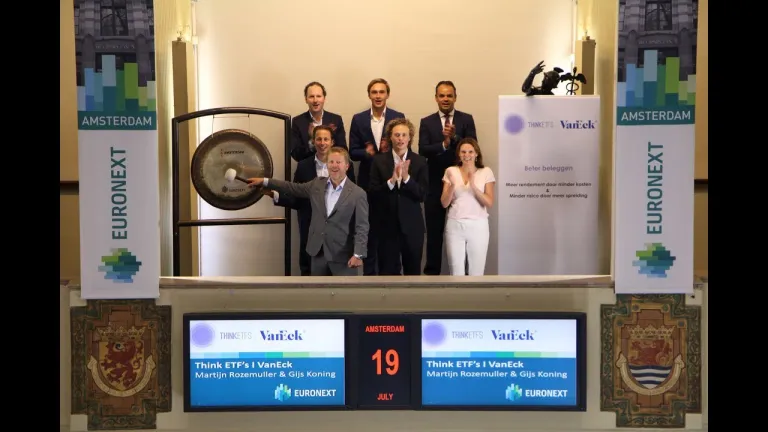 Met het luiden van de gong bij Euronext op Beursplein 5 in Amsterdam viert VanEck de voltooide overname van Think ETF's. Het nieuwe management werkt aan een uitbreiding van het gecombineerde productaanbod in heel Europa.