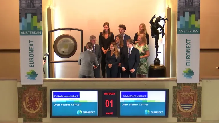 Van Lieshout & Partners bezoekt de Amsterdamse beurs van Euronext. Erik Beekes, directeur/eigenaar, opent de handelsdag.