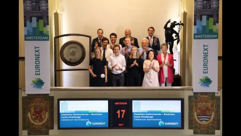 Klas 6 van het Gymnasium Celeanum uit Zwolle luidt de gong als winnaar van de CBS ConjunctuurBekerStrijd 2017/2018.