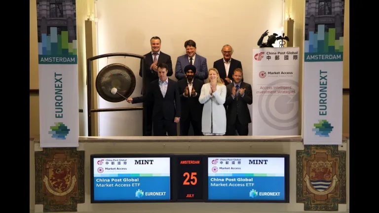 China Post Global - de internationale asset management tak van China Post Fund – luidt de gong aan de Amsterdamse beurs, ter ere van de listing van haar nieuwe Market Access CoCo bond ETF. China Post Global wordt vergezeld door MINT Partners, onderdeel van BGC Brokers LP, die de lead distributor zijn van de nieuwe ETF.