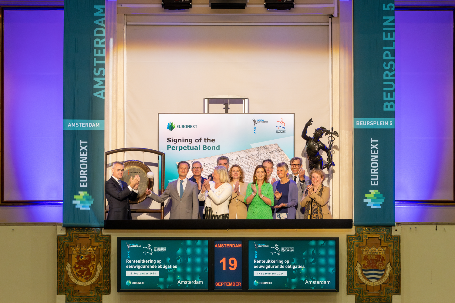 De handelsdag werd geopend door Jeroen Haan, Dijkgraaf van Hoogheemraadschap De Stichtse Rijnlanden in het bijzijn van René van Vlerken, CEO bij Euronext Amsterdam.