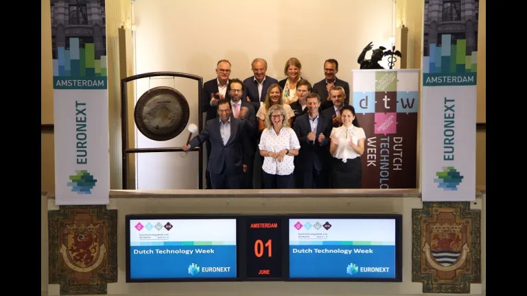 In aanloop naar de zevende editie van de Dutch Technology Week opent Frits van Hout, voorzitter van de Klankbord Dutch Technology Week en lid RvB ASML, de beurshandel.