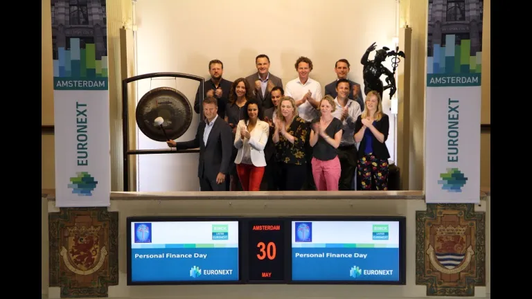 Jeroen Sonsma, directeur Binck Nederland, luidt voor de start van de Personal Finance Day de gong. Dit gezamenlijk initiatief van FD Mediagroep en BinckBank (ticker symbol: BINCK) vindt 30 mei plaats in Amsterdam.