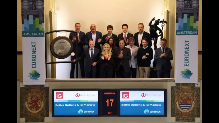 In 2015 is Better Options Amsterdam een samenwerking aangegaan met IG Markets, een Britse broker, opgericht in 1974 met een focus op online handelen. Deze unieke samenwerking biedt IG directe toegang tot de handelsvloer van de Amsterdamse beurs. Met het luiden van de gong wordt het 3-jarig jubileum van deze samenwerking gevierd.