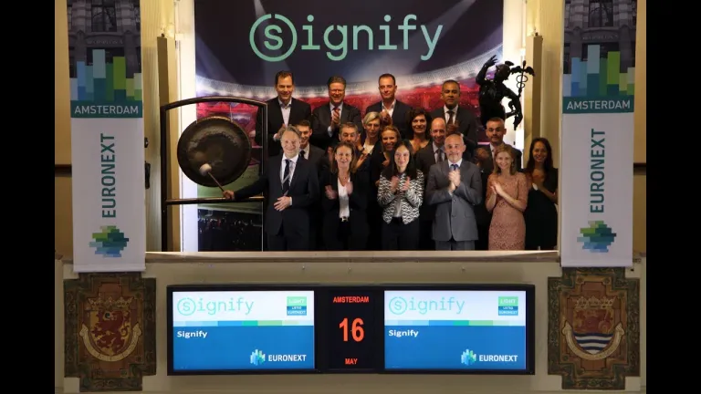 Signify is vanaf 16 mei 2018 de nieuwe bedrijfsnaam van Philips Lighting. Op de eerste handelsdag na de naamswijziging luidt Stephane Rougeot, Chief Financial Officer, de gong op de Amsterdamse beurs van Euronext. Hiermee luidt het bedrijf officieel de naamswijziging van Philips Lighting naar Signify in.