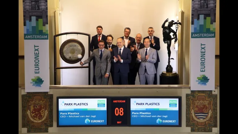 Onlangs realiseerde het Nederlandse Parx Plastics N.V. haar notering aan Euronext Access in Parijs. Ter viering van deze notering opent Michael van der Jagt, CEO Parx Plastics, de handelsdag met een slag op de gong.