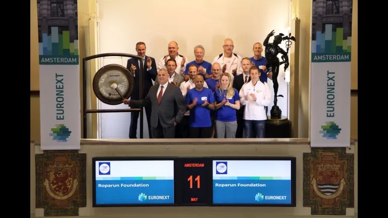 De Roparun gaat zaterdag 19 mei 2018 van start in Hamburg en Parijs en finisht op Tweede Pinksterdag 21 mei 2018 op de Binnenrotte in Rotterdam. Directeur van Stichting Roparun, Wiljan Vloet opent vandaag de handel samen met Roparun-deelnemers van teams Unilever (ticker symbol: UNA) en Team NN (ticker symbol: NN).