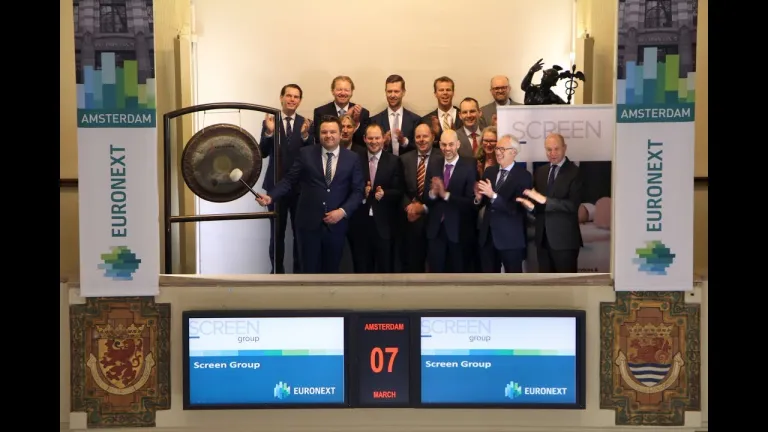 Screen Group opent de handelsdag aan de Amsterdamse effectenbeurs om zijn strategische partnerschap met Euronext Amsterdam te vieren, evenals de recente overname door TRG.