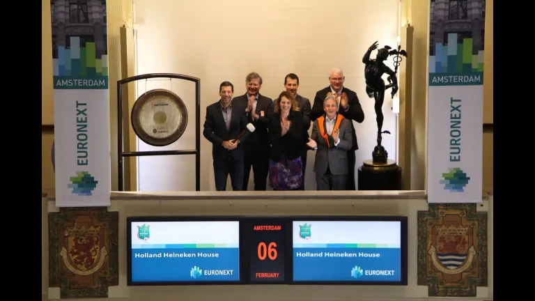Heineken (ticker symbol: HEIA) luidt de gong op de Amsterdamse beurs. De gongslag dient niet alleen als opening van de beurshandel, maar ook als pre-opening voor de Olympische Spelen en het Holland Heineken Huis op 9 februari.