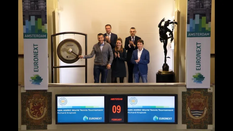 De samenwerking tussen hoofdsponsor ABN AMRO (ticker symbol: ABN) en Rotterdam Ahoy is het langstlopende titelsponsorship op de ATP World Tour. Om dat te eren luidt Richard Krajicek, Wimbledon-winnaar in 1996 en Toernooidirecteur van het toernooi, de beursdag in.