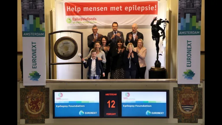 Het Epilepsiefonds opent de Amsterdamse beurs op Wereld Epilepsiedag. Het fonds, dat 125 jaar bestaat, vraagt zo extra aandacht voor de aandoening epilepsie, de gevolgen die het heeft en het taboe dat er op rust. Matthijs (9) luidt de gong. Hij werd anderhalf jaar geleden aanvalsvrij dankzij een ingrijpende hersenoperatie.