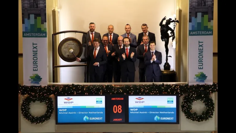 Michiel Assink is sinds 1 januari 2018 de nieuwe Directeur Nederland voor WDP en luidt hiervoor de gong op de Amsterdamse beurs in het bijzijn van zijn nieuwe collega’s.