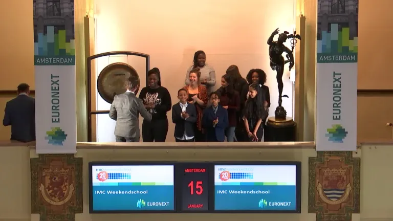 IMC Weekendschool Amsterdam Zuidoost viert dit jaar haar twintigjarig jubileum. Om dit bijzondere jubileumjaar af te trappen luidt een delegatie van leerlingen en alumni de gong. IMC Weekendschool (sinds 1998) is een school voor aanvullend onderwijs voor jongeren in de armste wijken van de grote steden in Nederland, veelal met een migratie-achtergrond.
