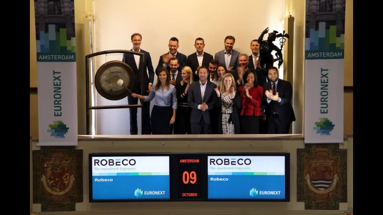 Robeco viert het vijfjarig bestaan van Robeco ONE met het openen van de Amsterdamse beurs van Euronext.