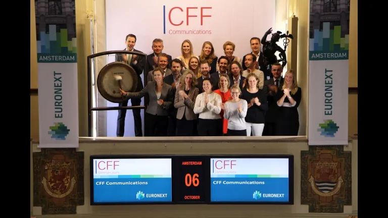 Communicatiebureau Citigate First Financial heet vanaf vandaag CFF Communications. Om de naamswijziging en het 25-jarig bestaan te vieren, opent CFF Communications de Amsterdamse Beurs met een gongslag.