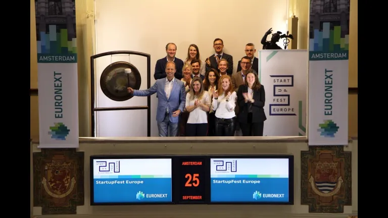 StartupDelta opent vanmorgen de Amsterdamse beurs van Euronext voor het StartupFest Europe.