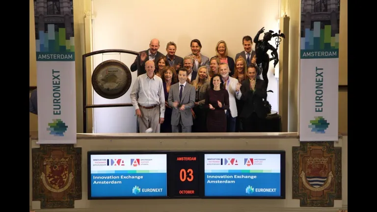 Innovation Exchange Amsterdam (IXA) luidt de beursgong bij Euronext voor de opening van de nieuwe Amsterdam Venture Studios.
