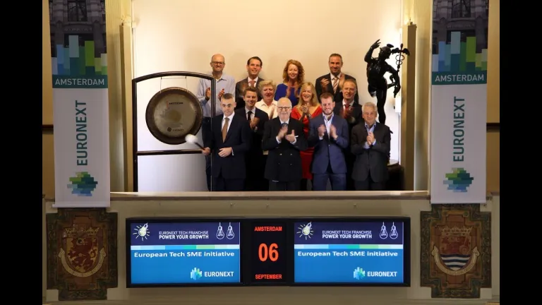 Als start van de derde editie van het Euronext TechShare programma –2017-2018 luiden de nieuwe Nederlandse deelnemers en partners van dit seizoen de gong. TechShare is een educatieprogramma speciaal gericht op snelgroeiende en innovatieve techbedrijven, die meer willen weten over het proces rondom een beursgang. Het programma helpt eigenaren en bestuurders van techbedrijven om de functie en dynamiek van de financiële markten beter te begrijpen. CEO’s van de deelnemende partijen zijn zo beter in staat om de mogelijkheden van een beursnotering en de kansen ervan te beoordelen in relatie tot hun strategie en groeiambities.