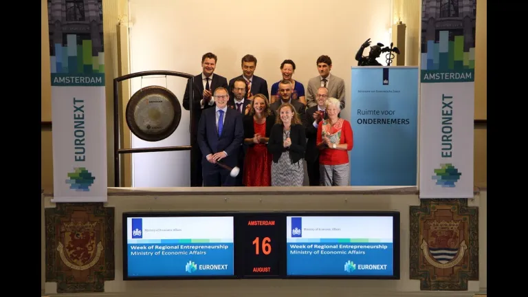 Van 14 augustus tot en met 23 augustus staat de gongceremonie op Beursplein 5 in het teken van de bedrijvigheid en het ondernemerschap in de verschillende regio’s in Nederland. Tijdens de Week van het Regionale Ondernemerschap brengt Euronext de belangrijke rol van Regionale Ontwikkelingsmaatschappijen onder de aandacht.