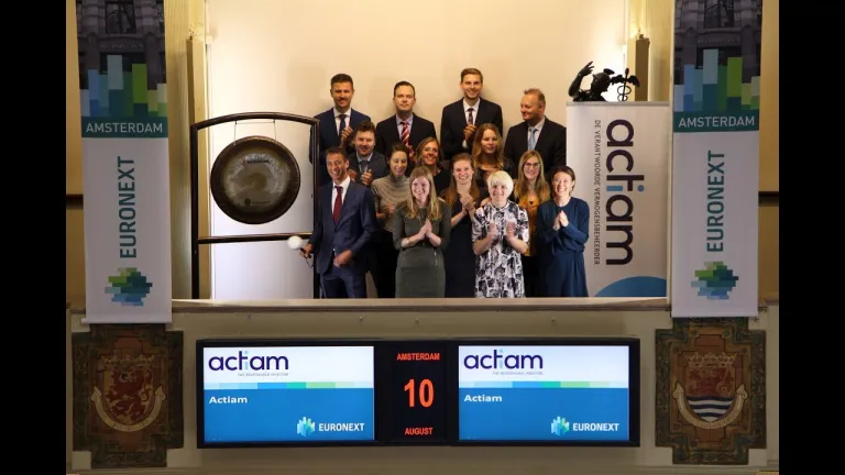 Vermogensbeheerder ACTIAM heeft haar jaarlijkse PRI-scores bekend gemaakt. In het onderzoek van de Principles for Responsible Investment (PRI) behaalt ACTIAM dit jaar de hoogst haalbare score op maar liefst 11 van de 14 onderdelen. Ten opzichte van 2016 verbeterde ACTIAM haar score op zeven onderdelen. Zij bezoeken de Amsterdamse beurs en brengen dit onder de aandacht met een slag op de gong.