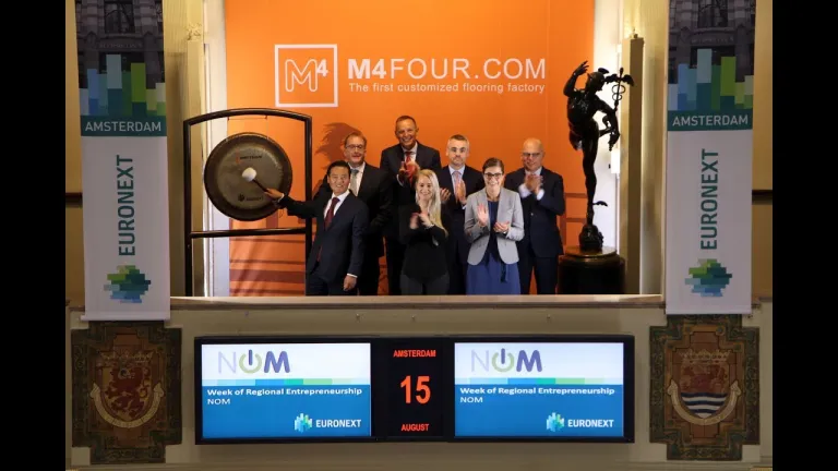 Geert Buiter, plaatsvervangend directeur van de Investerings- en Ontwikkelingsmaatschappij voor Noord-Nederland (NV NOM), opent de handel. De NOM wil een wezenlijke bijdrage leveren aan de economische groei in Noord-Nederland. Dit doet zij door ondernemingen te ondersteunen bij de ontwikkelsprongen die ze tegenkomen. Geert Buiter: “Wij willen ondernemingen in het Noorden helpen bij hun groei. Van een starter met een innovatief idee tot groei- en overnametrajecten van bestaande ondernemingen. We zijn trots op de bedrijven waarmee we mogen samenwerken en die deel uitmaken van onze portefeuille. Bedrijven die ieder voor zich geleid worden door enthousiaste en gedreven ondernemers die samen met hun team werken aan succes. Een van die bedrijven is M4FOUR, fabricant van customized vinyl vloeren. Samen met hen openen wij graag vandaag de beurs”.