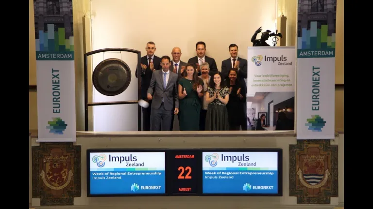 NV Economische Impuls Zeeland (Impuls), de regionale ontwikkelingsmaatschappij van Zeeland, luidt de gong op Beursplein 5 om daarmee het belang van regionale ontwikkelingsmaatschappijen voor de Nederlandse economie te onderstrepen.