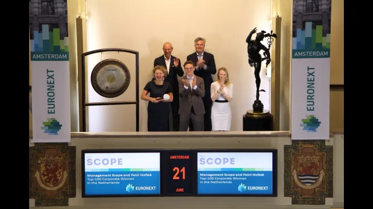 Onlangs publiceerde Management Scope de Top-100 Corporate Vrouwen van Nederland 2017. Petri Hofsté, Corporate Vrouw van 2017, opent samen met een delegatie de handel op de Amsterdamse beurs.