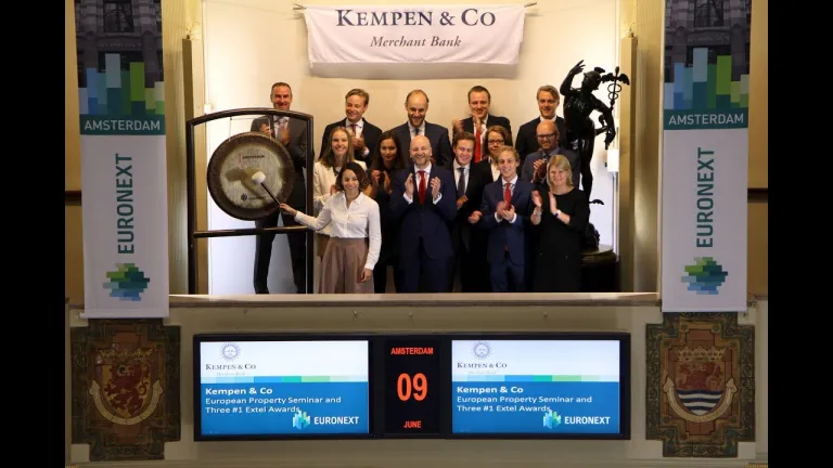 Kempen & Co opent de handel op de Amsterdamse beurs om de 15de editie van het jaarlijkse Kempen European Property Seminar te vieren. Het seminar brengt Europese vastgoedbedrijven en investeerders samen en is een centrale ontmoetingsplek geworden voor de Europese vastgoedwereld. Tijdens één-op-één meetings en kleine groepsmeetings ontmoeten meer dan 50 CEO’s en CFO’s van een breed scala aan bedrijven elkaar.