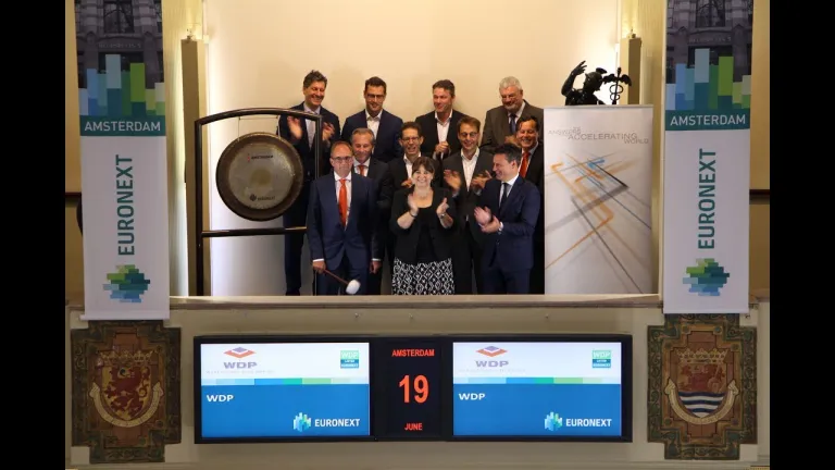 Vastgoedspecialist WDP (ticker symbol: WDP) opent de handel op de Amsterdamse beurs. Met deze gong, wil WDP zijn lange termijn relatie met DHL vieren. Met de bouw van een nieuw sorteercentrum voor DHL Parcel in Amsterdam realiseert WDP het tiende pand binnen zijn vastgoedportefeuille in de Benelux op maat voor DHL. Bouwbedrijf Aan de Stegge Twello is de aannemer van dit nieuwbouwproject. Bovendien wordt deze site uitgerust met zonnepanelen, in samenwerking met Encon. Meteen het zestigste WDP-zonnedak.