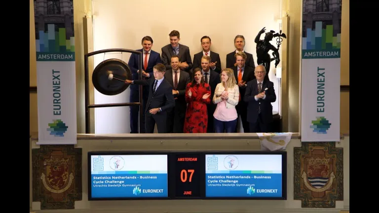 Dit jaar namen 188 klassen deel met als winnaar klas 6Ec2 van het Utrechts Stedelijk Gymnasium. Zij bezoeken de Amsterdamse beurs en openen de handel met een slag op de gong.