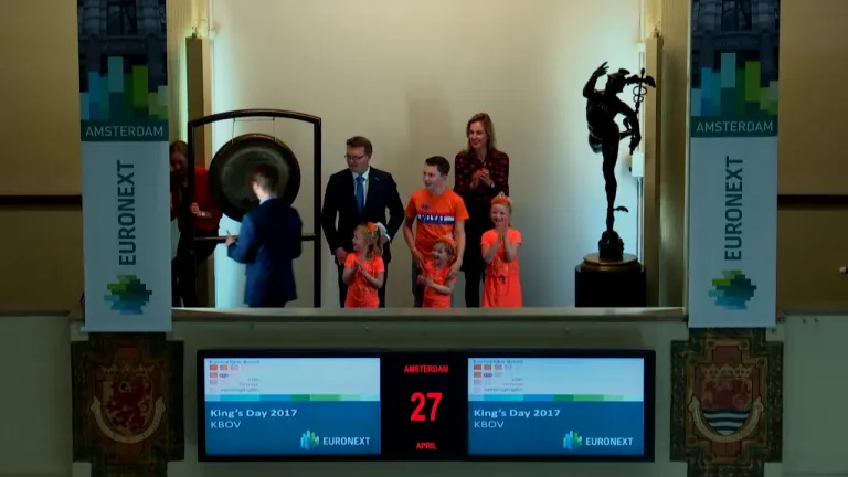 Op Koningsdag zijn talloze Oranjeverenigingen druk in de weer om een dorps- of stadsfeest te organiseren. De Koninklijke Bond van Oranjeverenigingen is de landelijke vertegenwoordiger van al deze Oranjeverenigingen. Zij bezoeken Beursplein 5 en luiden de gong op deze nationale feestdag.