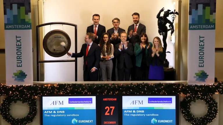 De financiële toezichthouders Autoriteit Financiële Markten (AFM) en De Nederlandsche Bank (DNB) verruimen de toegang voor innovatieve diensten tot de markt voor financiële dienstverlening, door middel van een nieuwe aanpak; ‘Maatwerk voor Innovatie’. Om die reden bezoeken zij de Amsterdamse beurs van Euronext en openen zij de handel.