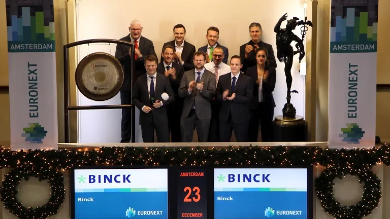 Binck (ticker symbol: BINCK) bezoekt de Amsterdamse beurs van Euronext en luidt de gong. Binck behaalde over 2016 een voordeel voor haar klanten van € 5 miljoen dankzij betere orderuitvoering voor aandelen via het Best of Book platform van Euronext.