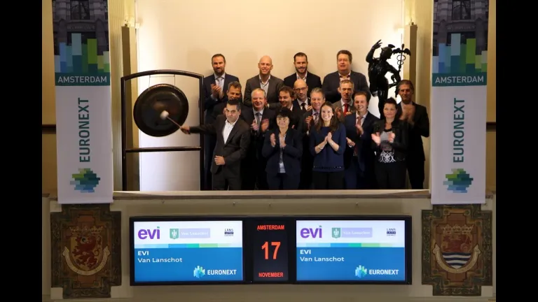 Evi van Lanschot bezoekt Beursplein 5 na het winnen van een Gouden Stier voor Beste online vermogensbeheerder. Evi, onderdeel van het aan Euronext genoteerde Van Lanschot (ticker symbol: LANS) verdiende het felbegeerde beeldje volgens de jury vooral vanwege de scenario-analyses van de ontwikkeling van het vermogen, de uitgebreide kwartaaloverzichten en de heldere en begrijpelijke communicatie voor beginnende beleggers.
