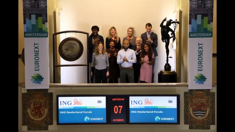 Met het fonds investeert ING niet alleen in grote maatschappelijke initiatieven en ideeën, maar wil het ook lokale projecten in Nederland een steuntje in de rug geven. Met de campagne ‘Help Nederland vooruit’ wil het ING Nederland fonds deze lokale verenigingen en stichtingen financieel ondersteunen. Wegens de start van deze campagne bezoeken zij Beursplein 5 en openen ze de handel met een slag op de gong.