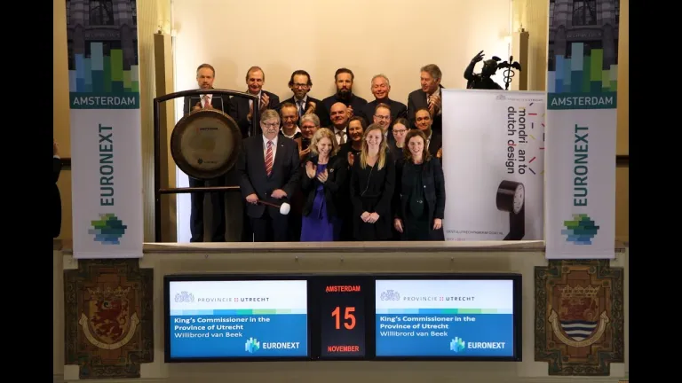Tijdens het bezoek van Commissaris van de Koning Willibrord van Beek en delegatie aan Euronext Amsterdam, vestigen zij de aandacht op 100 jaar De Stijl en viert de regio Utrecht de lancering van JIM (Jaarbeurs Innovation Mile), een nieuwe stap in het stimuleren van talent en innovatief ondernemerschap die passen in het streven van onze groene, gezonde, slimme en mooie regio.