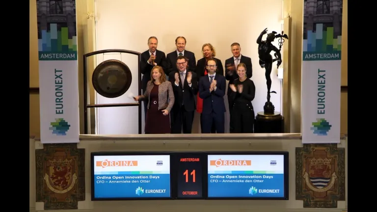 Met een ferme slag op de gong opent de kersverse CFO Annemieke den Otter van Ordina (ticker symbol: ORDI) vandaag de beurs in Amsterdam. De gongslag is het startsein voor de jaarlijkse Ordina Open Innovatiedagen, die dit jaar op 11 en 12 oktober op het hoofdkantoor in Nieuwegein plaatsvinden.