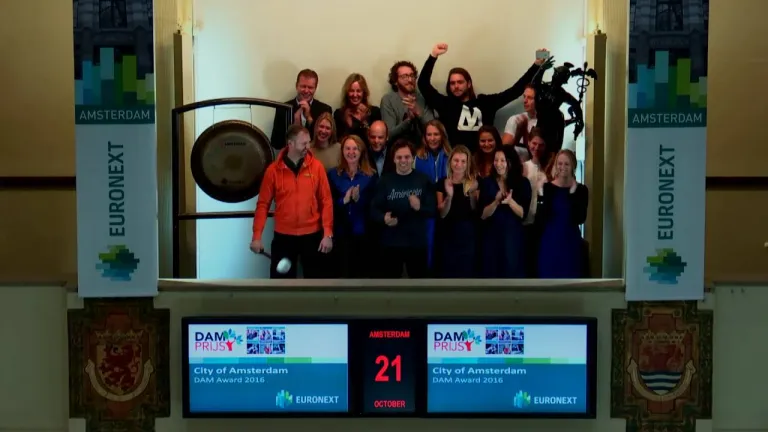 De finalisten van de DAM Prijs 2016 luiden de gong en bezoeken de Amsterdamse beurs. De DAM Prijs is een prijs voor de meest duurzame Amsterdamse ondernemers in het MKB en bekroont de duurzame koplopers.