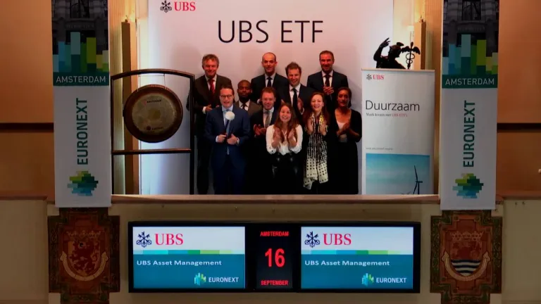 UBS Asset Management heeft een belangrijke mijlpaal bereikt met het behalen van meer dan 1 miljard US$ assets under management in haar duurzame ETF reeks. Marcel Danen, Hoofd UBS ETF Nederland, luidt om die reden de gong en opent hiermee de handel.