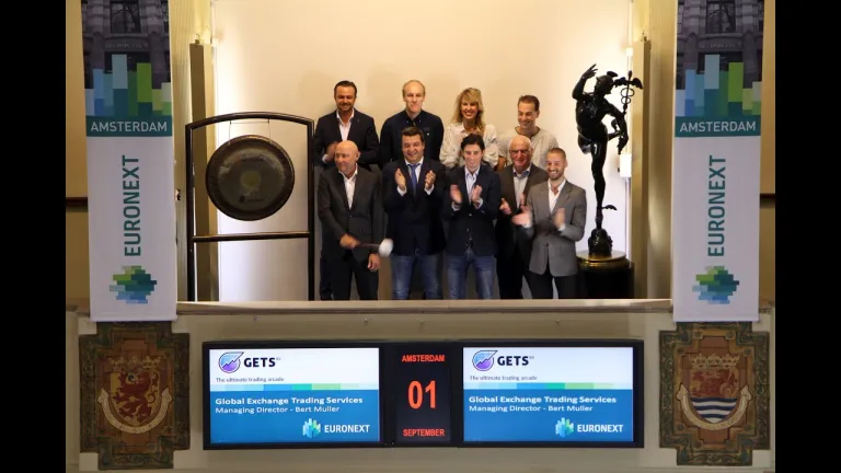 Global Exchange Trading Services B.V. (GETS) is in 2009 opgericht en is 100% dochter van Nyenburgh Holding B.V. Dit jaar zijn zij vijf jaar gevestigd op Beursplein 5 en om die reden openen zij de handel met een slag op de gong.