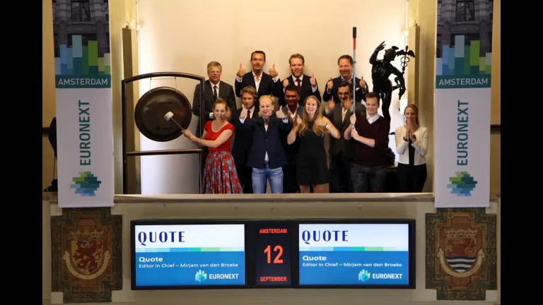 Quote viert dertig jaar zaken, geld, carrière, glamour en stijl in de polder. Bovendien viert de Quote 500 dit jaar haar twintigste verjaardag. Hoofdredacteur van de Quote, Mirjam van den Broeke, luidt de gong te Beursplein 5.