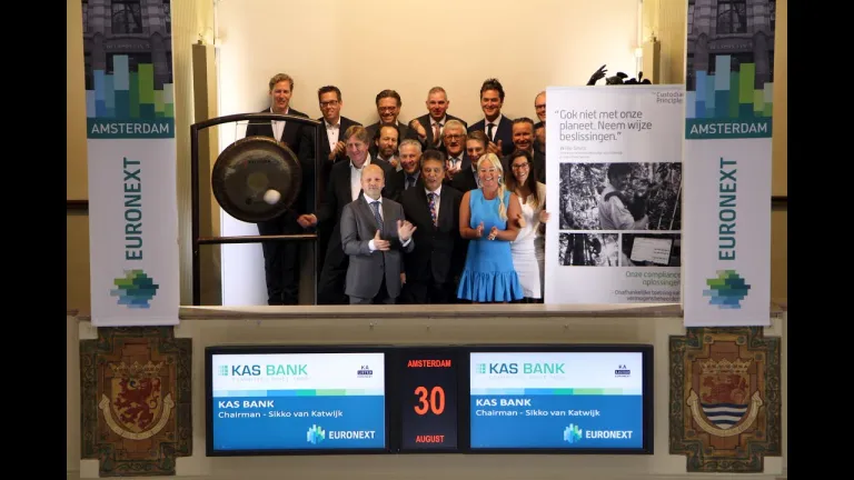 KAS BANK opent beurshandel met gongslag