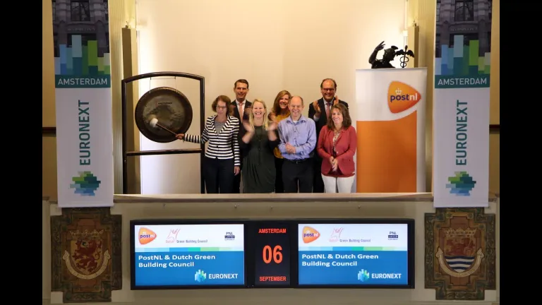 PostNL (ticker symbol: PNL) heeft als eerste logistieke bedrijf in Nederland succesvol de duurzame prestaties van twee van haar gebouwen laten certificeren met duurzaamheidskeurmerk BREEAM-NL In-Use. Om deze reden bezoeken zij de Amsterdamse beurs en openen ze de handel met gongslag.